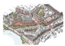 Views sought on Shrewsbury town centre plans Artist's impression of Smithfield Riverside Phase 1 A four-week public consultation is now underway on the Smithfield Riverside regeneration project in Shrewsbury town centre. Smithfield Riverside is set to transform the area between the River Severn, Darwin Centre, Roushill and Raven Meadows. Earlier this year Shropshire Council, supported by the Shrewsbury Big Town Plan Partnership, secured almost £19 million of Levelling Up funding from Government to further support the regeneration of Shrewsbury town centre – kickstarting design work on the Smithfield Riverside masterplan. The overarching masterplan will be split into four key zones, aiming to improve connectivity between the town centre and the town’s river loop. This first public consultation focuses on zone one, located to the west and northwest of the Darwin Centre. Delivered through four separate planning applications, proposals would see the demolition of the Riverside shopping centre and former Riverside medical practice to create space for modern offices and homes, as well as an exciting new leisure offer including restaurants and a cinema. The plans we're asking for your views on include a proposed landmark new public park adjacent to Roushill to breathe new life into this area through open green space, trees and planting, while helping to improve biodiversity in the town centre.